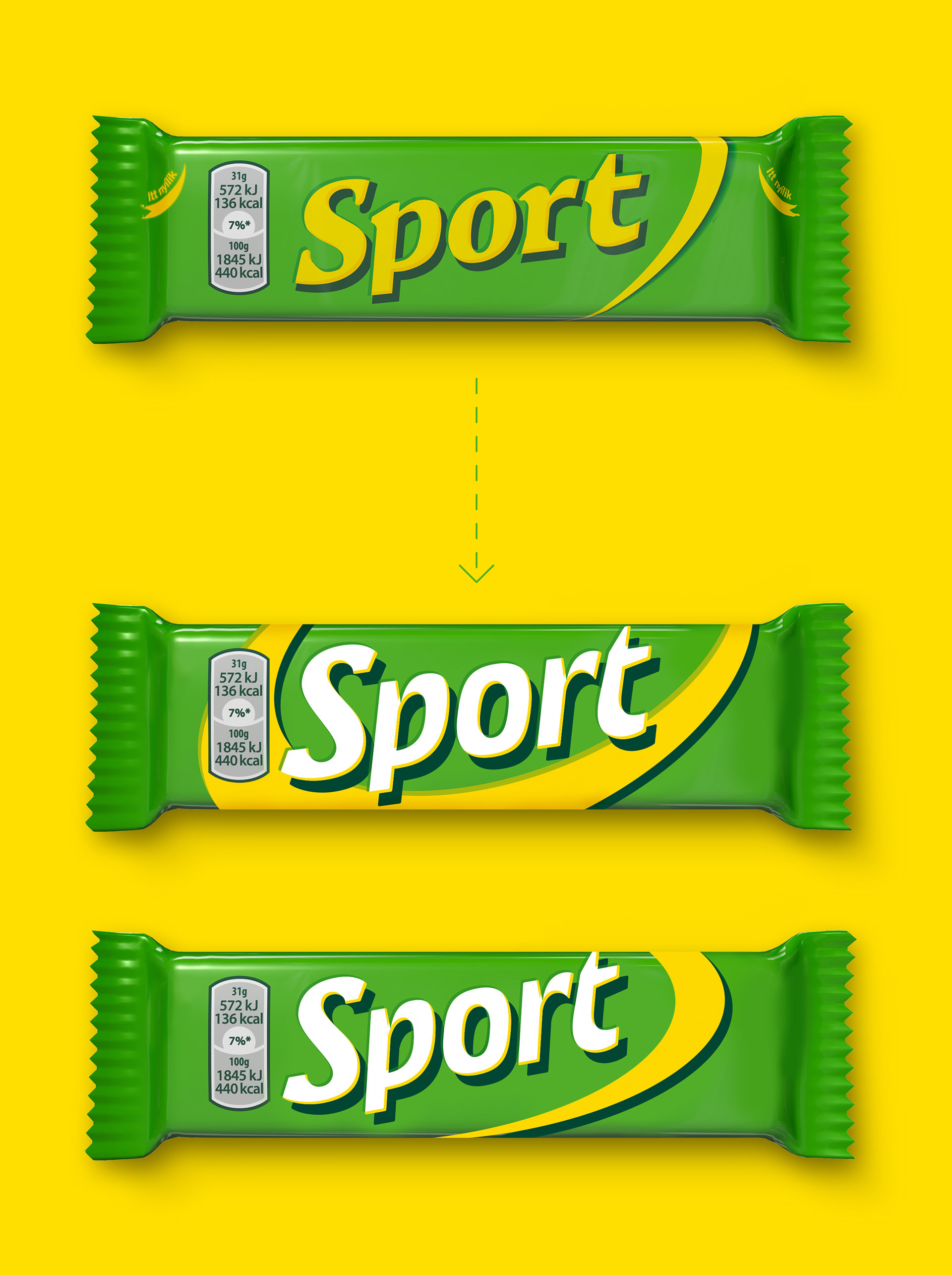 Redesigning the Sport Bar packaging and typography-based logo in line with current trends, while respecting the traditional spirit of the Sport Bar.